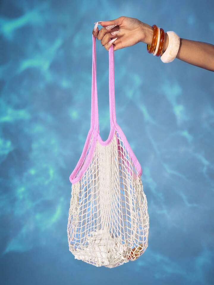 Fairycore Modische, vielseitige, große Mesh-Strand-Tasche mit Häkelarbeit für Frauen