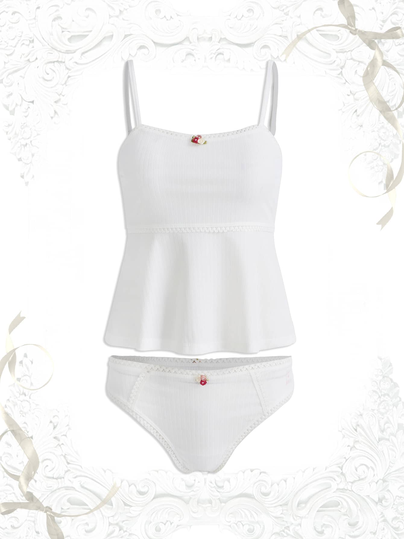 Fairycore Dessous Set mit Blume Applikation, Rüschenbesatz