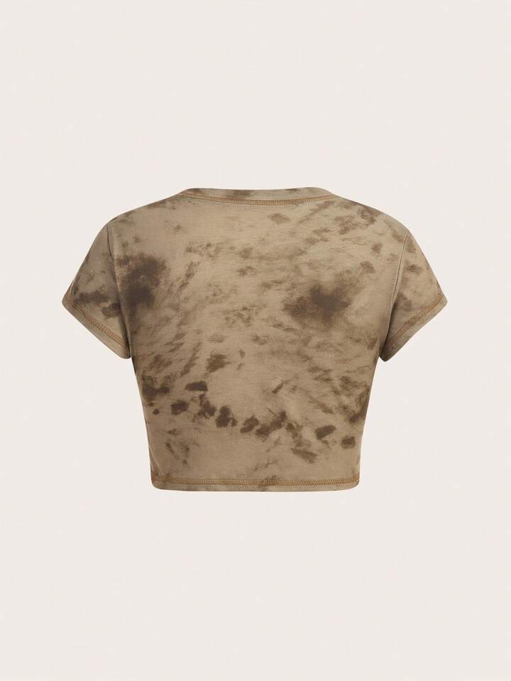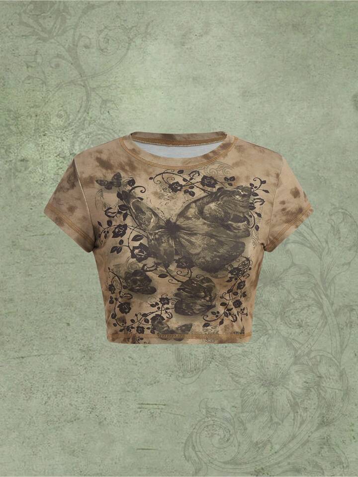 Fairycore Crop T-Shirt mit Blume & Schmetterling Muster, Batik,