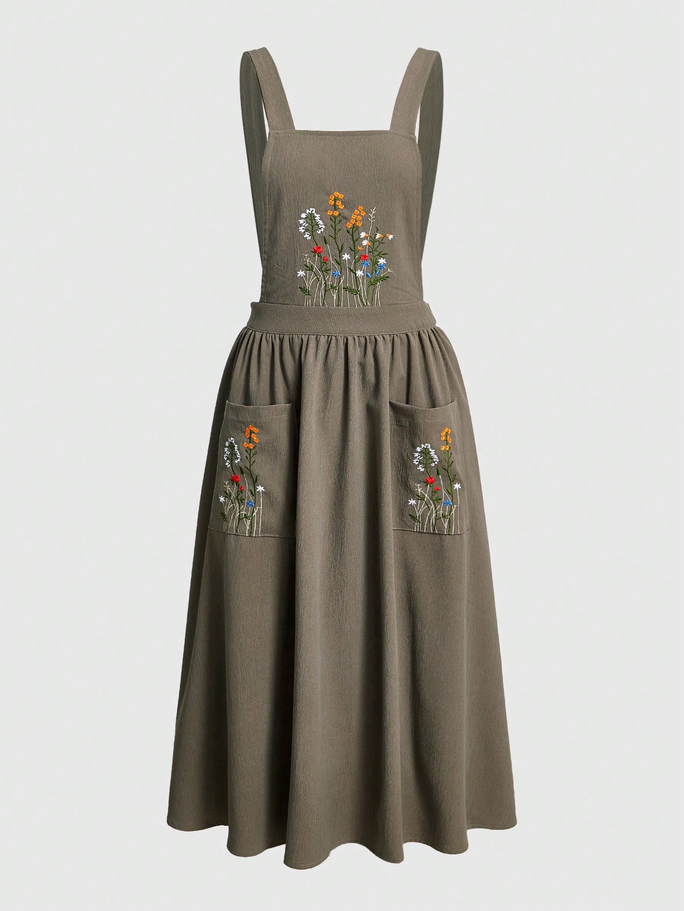 Fairycore Overall Kleid mit Blume Stickerei, Tasche vorn,
