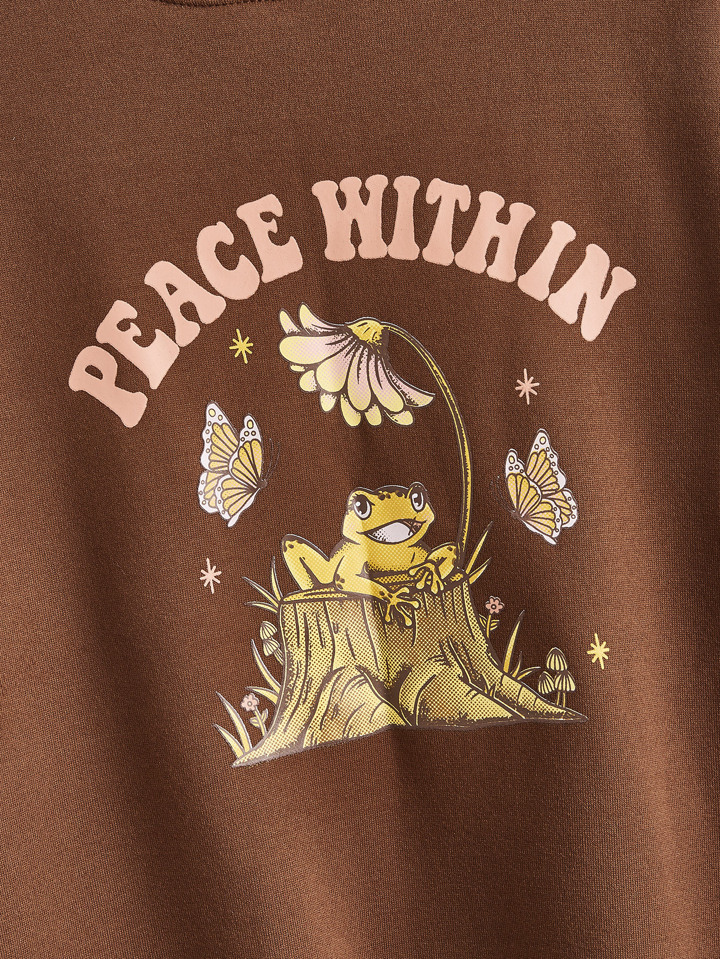 Fairycore Sweatshirt mit Frosch Buchstaben Grafik
