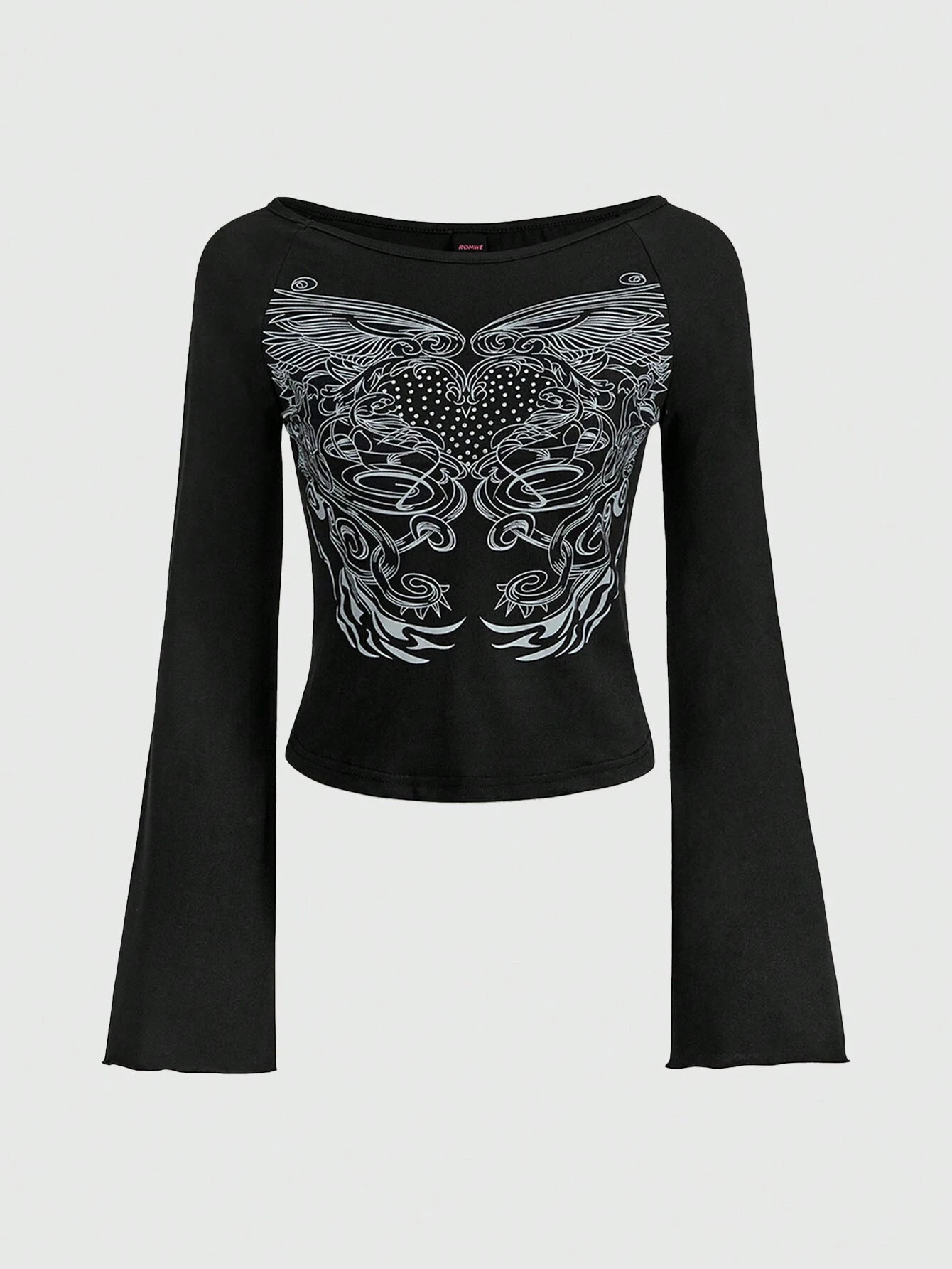 Fairycore Strass grafisch Lässig Damen T-Shirts