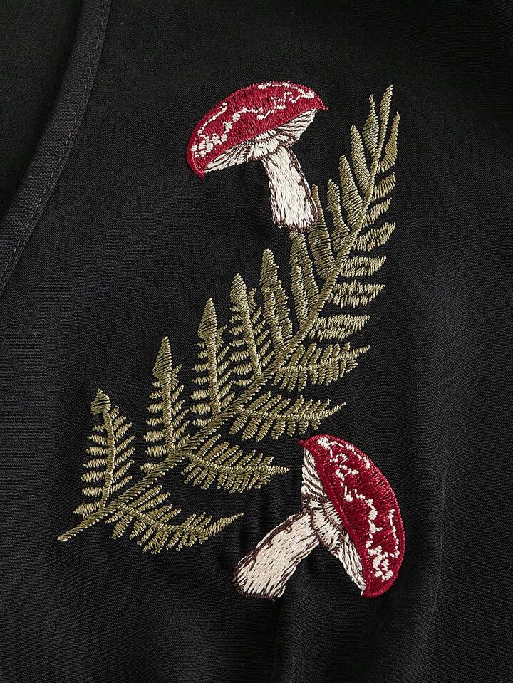 Fairycore Kleid Mit Pilzstickerei, Schleife Und Gürtel, Asymmetrischem Saum Und Rüschenbesatz