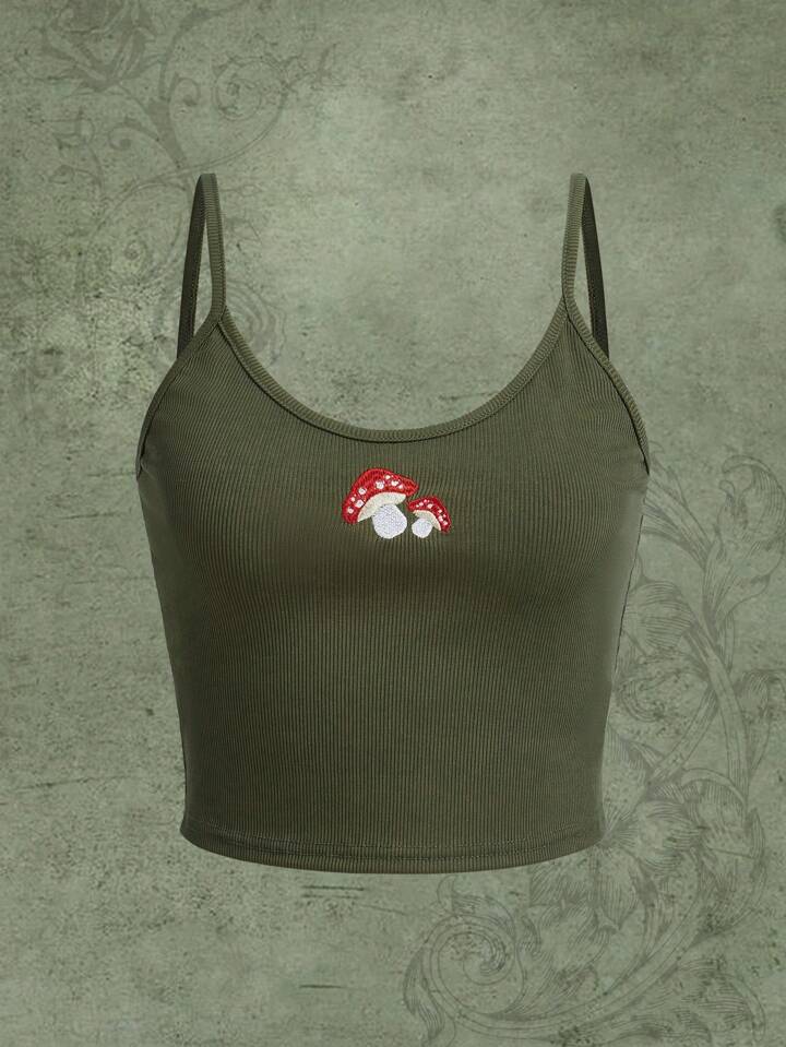 Fairycore Cami Top mit Pilz Stickerei