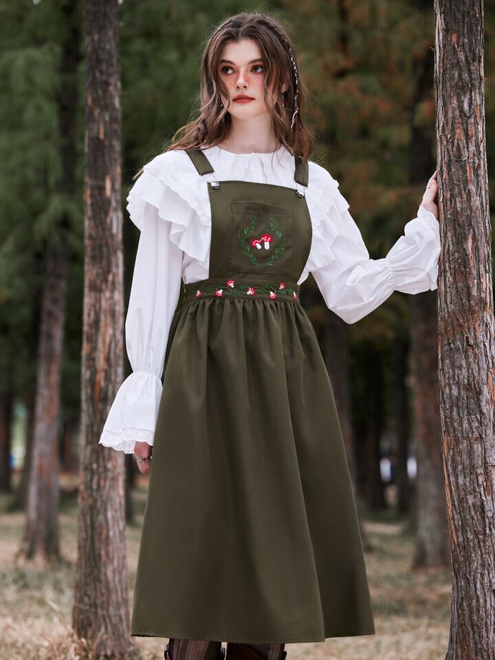 Fairycore Overall Kleid mit Pilz Stickerei, ohne Top