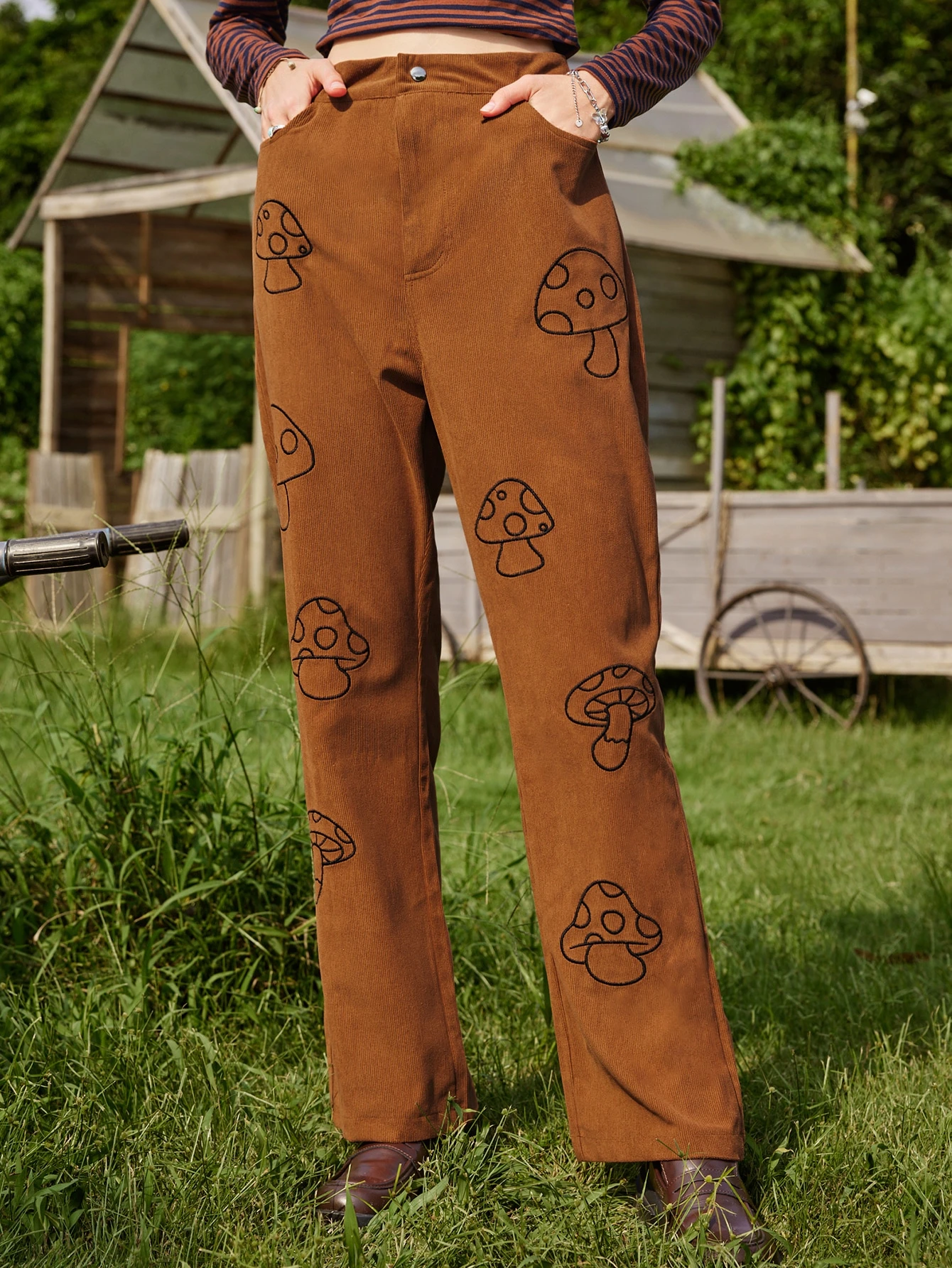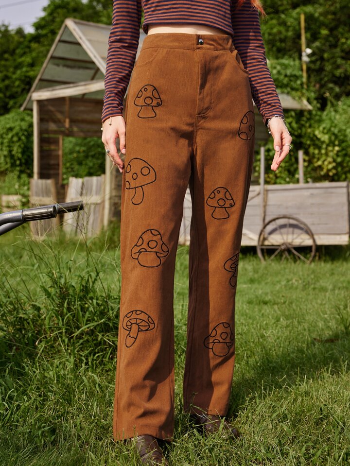 Fairycore Hose mit Pilz Stickerei