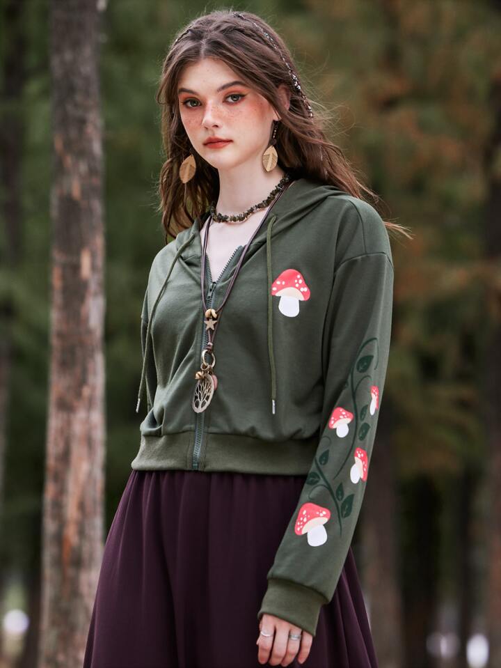 Fairycore Ziehbändchen Reißverschluss Cartoons Lässig Damen Sweatshirts