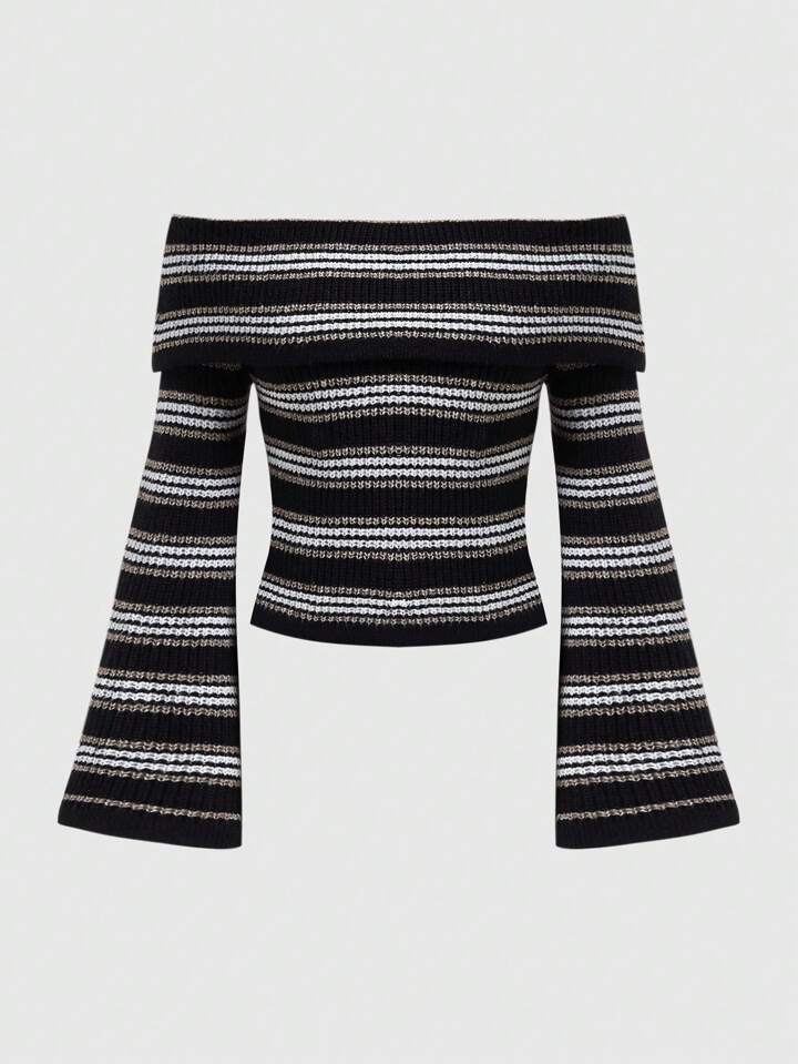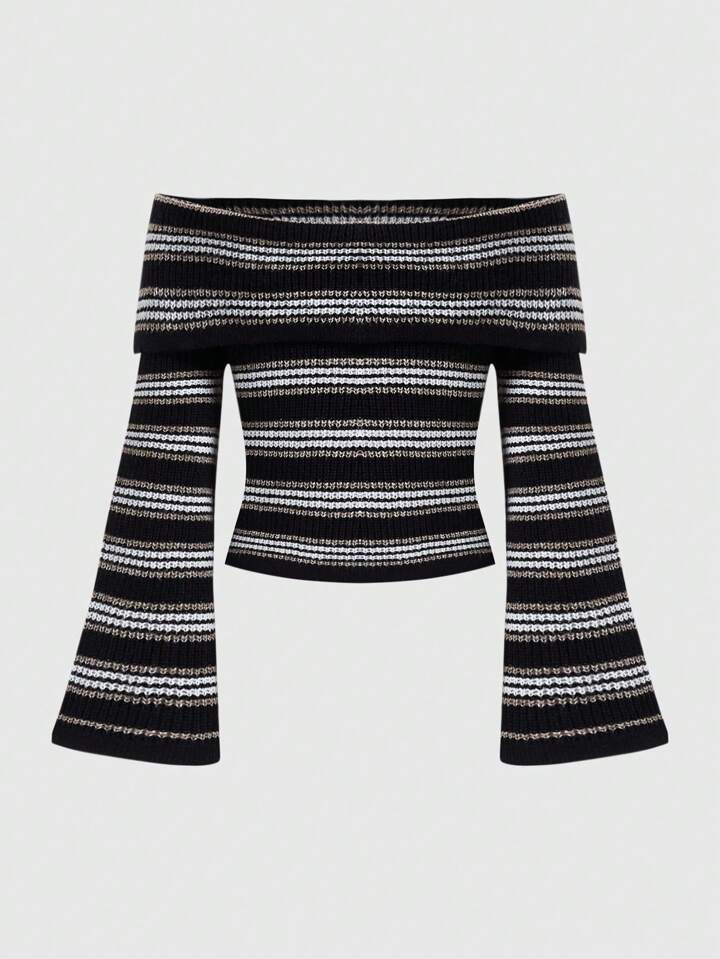 Fairycore Herz-ausschnitt Gestreifter Pullover Mit Ausgestellten Ärmeln