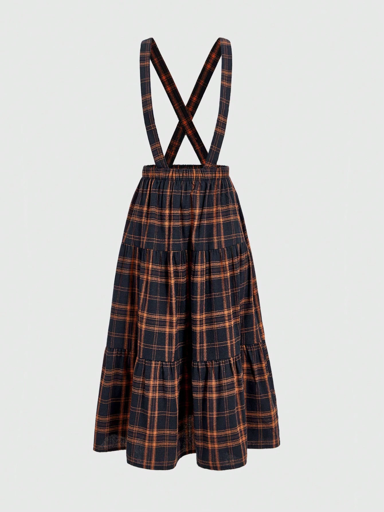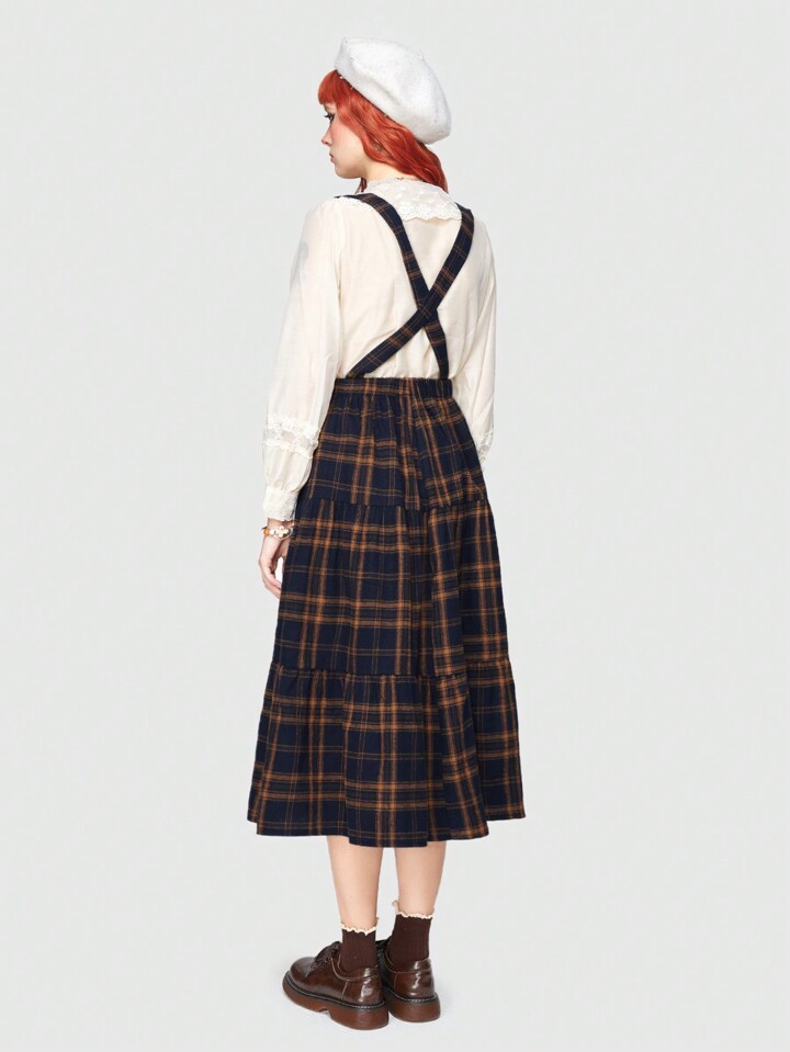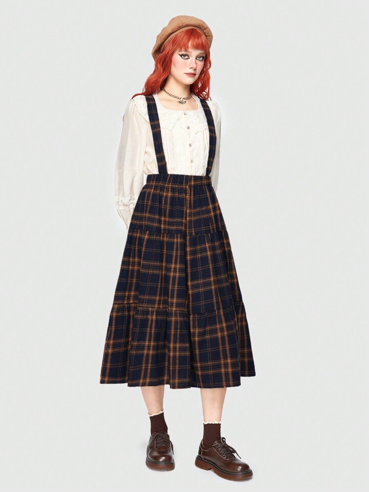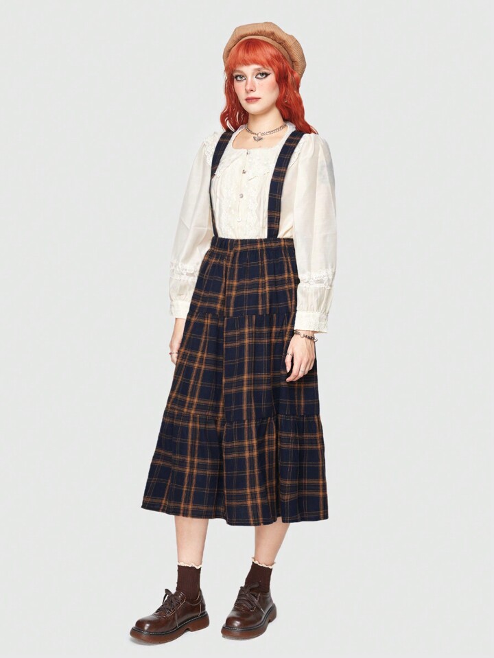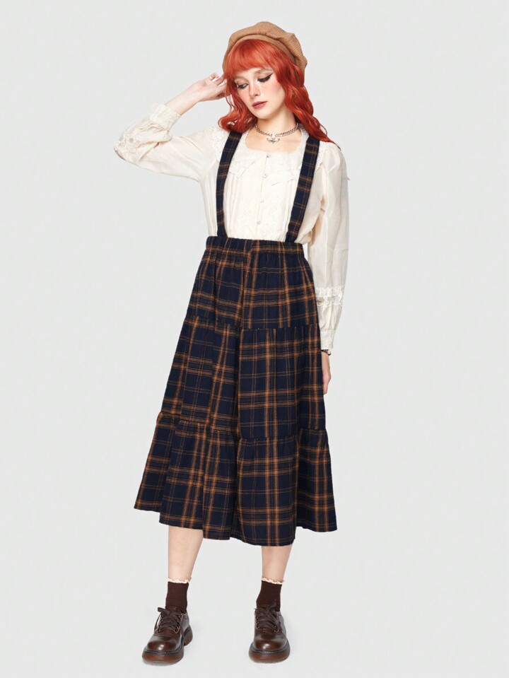 Fairycore Karierter, Bedruckter Hosenträgerrock Ohne Top