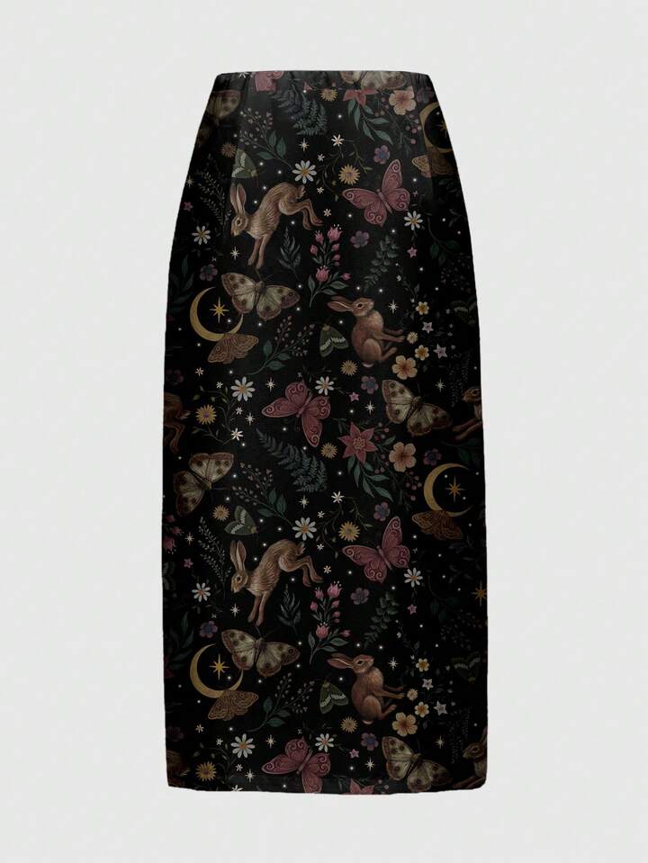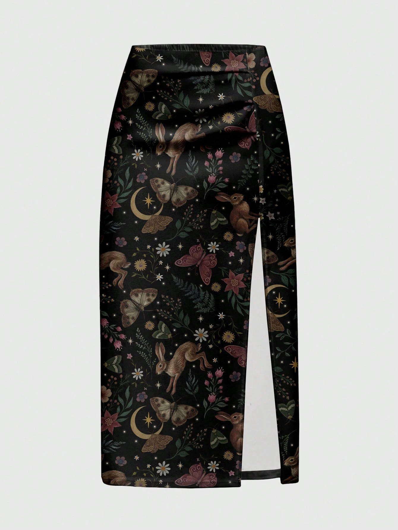 Fairycore Große Größen Damen Gothic Dunkel Mysteriös Hase Wald Pilz Sonne Mond Stern Hoher Schlitz Rock