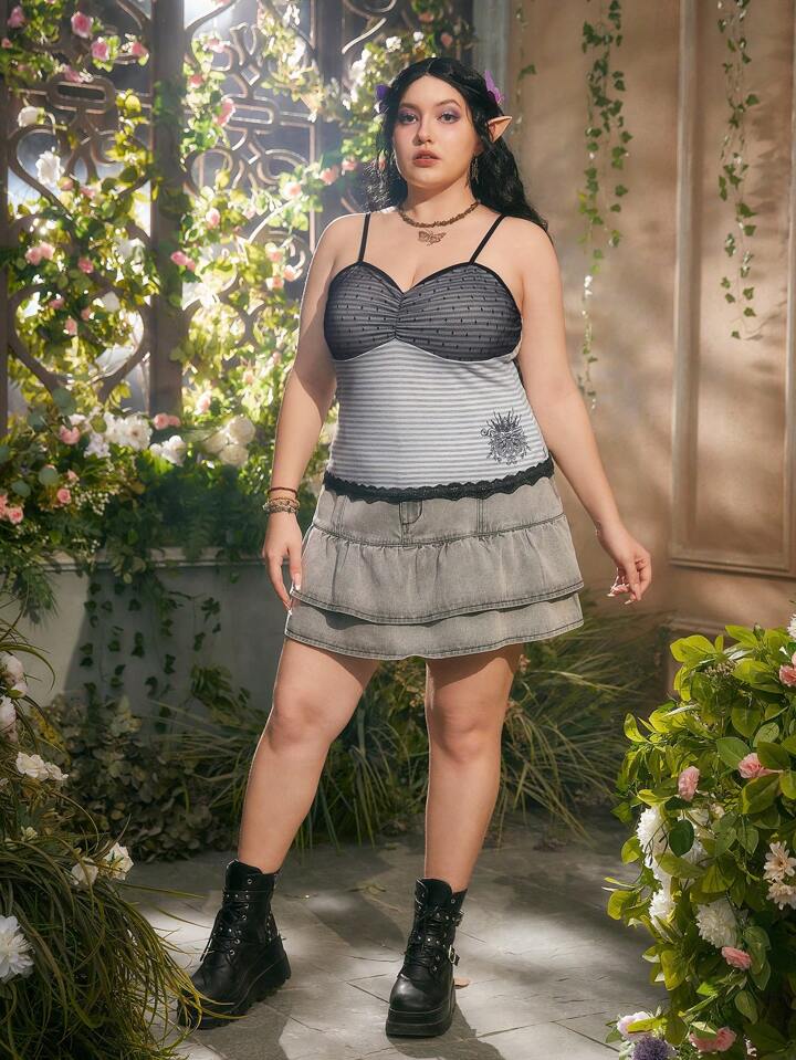 Fairycore Cami Top mit Streifen Muster, Spitzenbesatz,