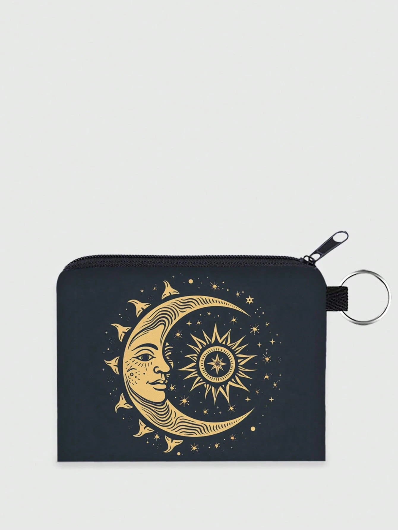 Fairycore Polyester Münzbeutel mit Sonne und Mond Muster, Portemonnaie für Damen, Urlaubsgeschenk