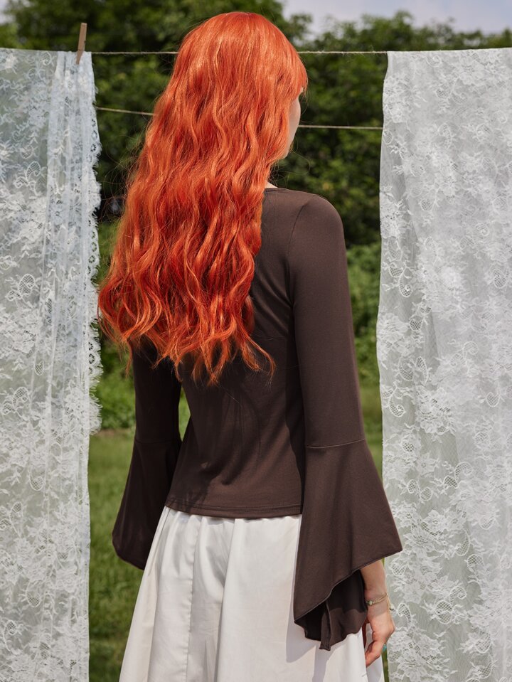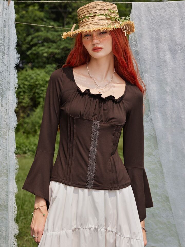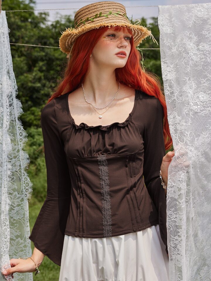 Fairycore T-Shirt mit Rüschen, Rüschenbesatz