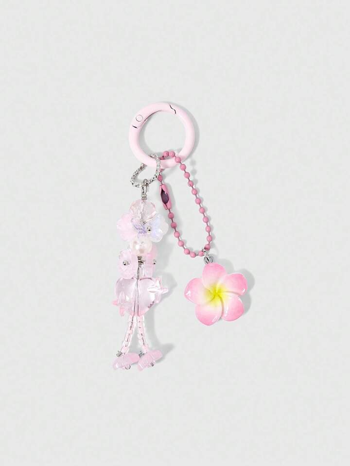 Fairycore Frischer Frühlingswind Rosa Blumen Schlüsselanhänger, Dopamin Perlen Anhänger Anhänger für Taschen