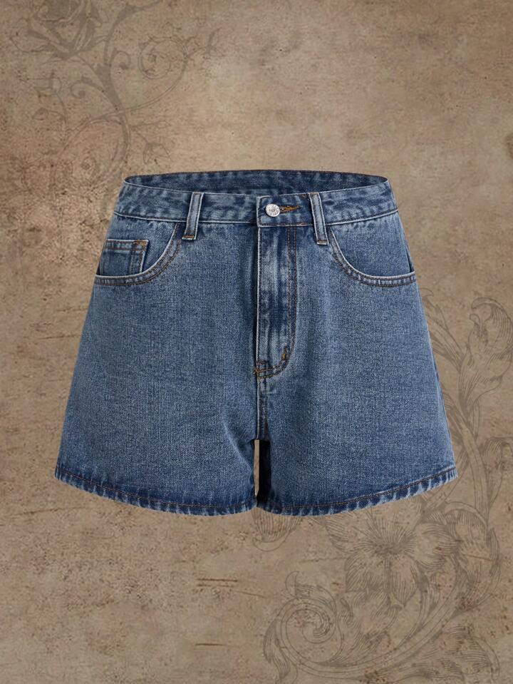 Fairycore Denim Shorts mit Stern Muster, unbearbeitetem Saum,