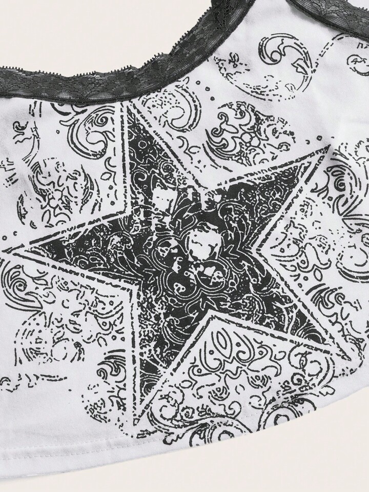 Fairycore Cami Top mit Stern Muster, Kontrast Spitzen,