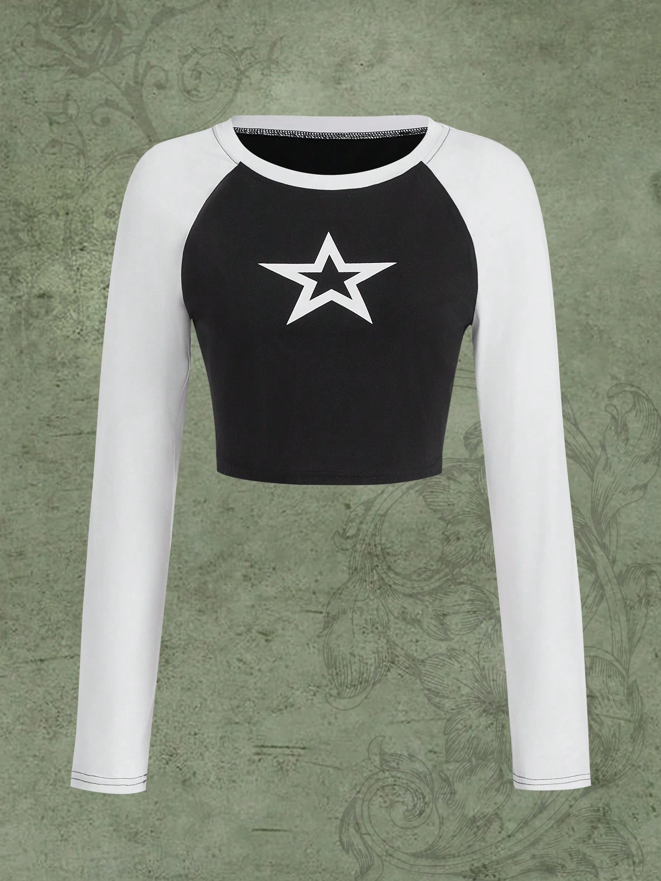 Fairycore T-Shirt mit Stern Muster, Raglanärmeln,