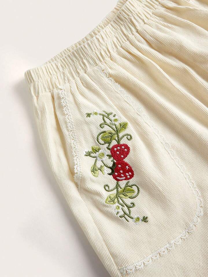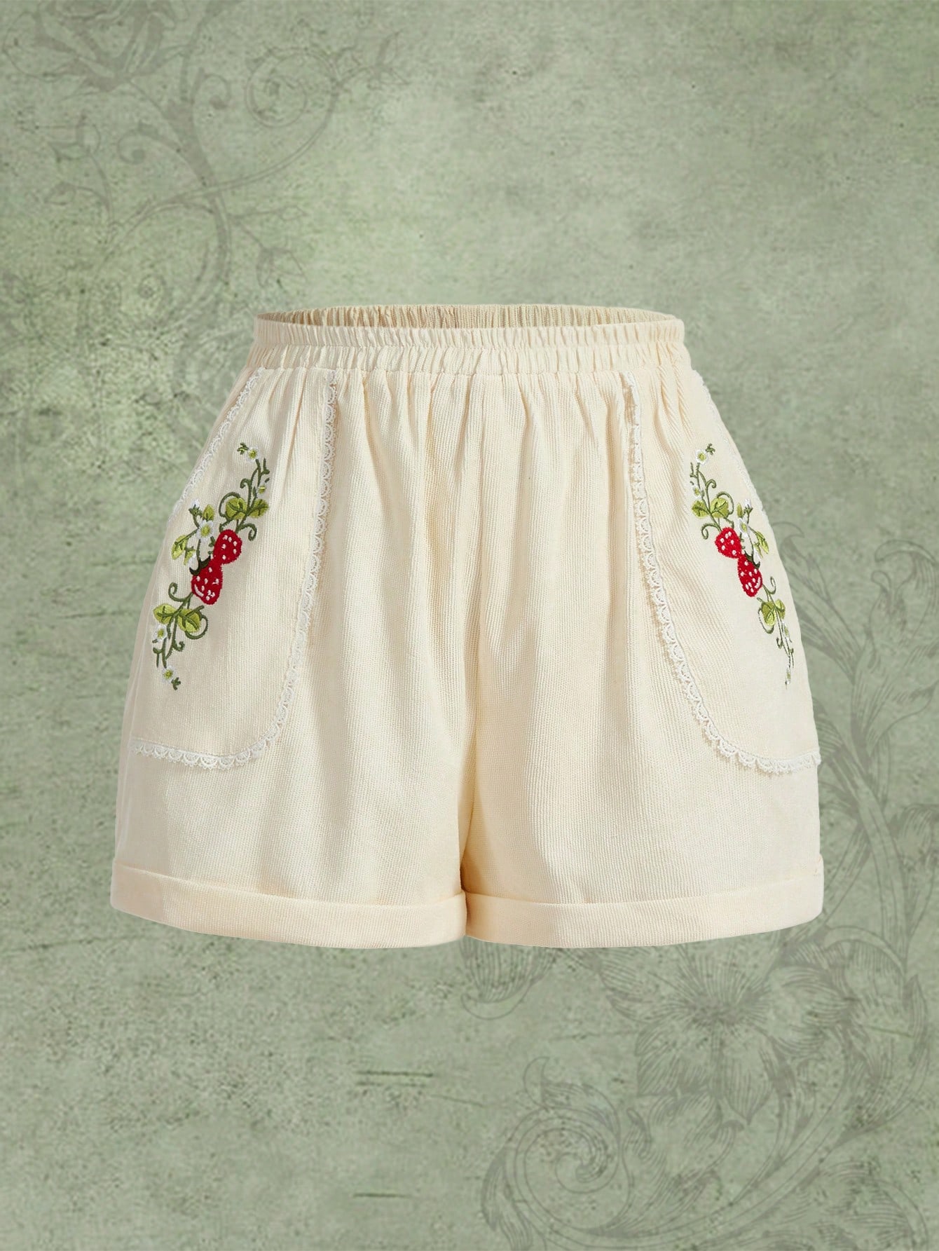 Fairycore Shorts mit Erdbeere Stickerei, Tasche,