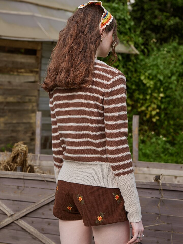 Fairycore Pullover mit Streifen, halber Knopfleiste