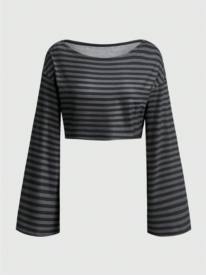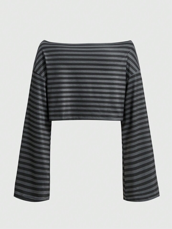 Fairycore Crop T-Shirt mit Streifen Muster, Drop Shoulder