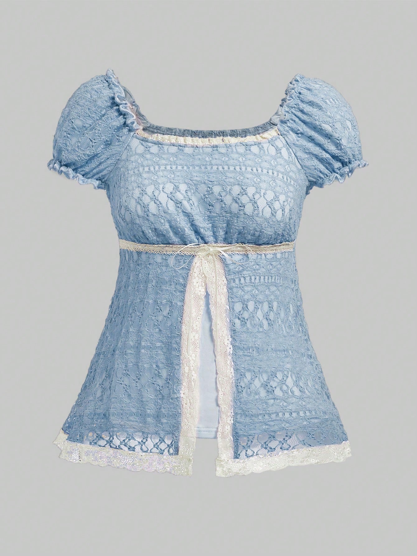Fairycore Süßes Frauen T-Shirt mit gestuftem Saum und Schlitz
