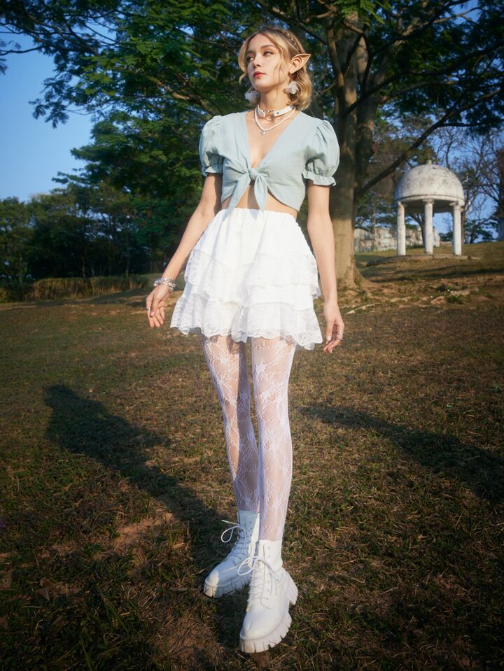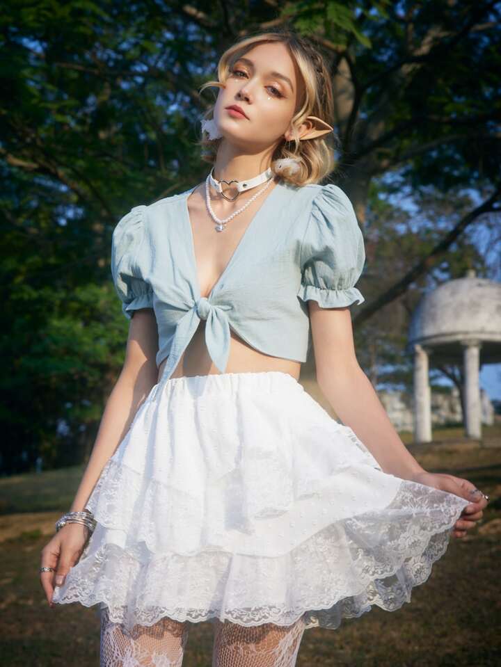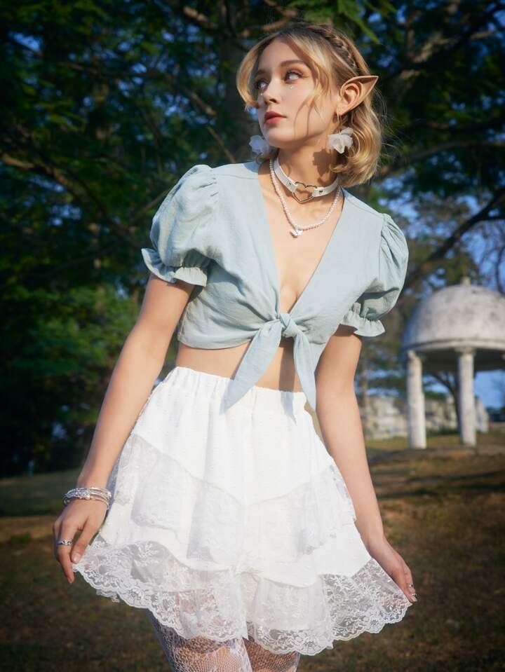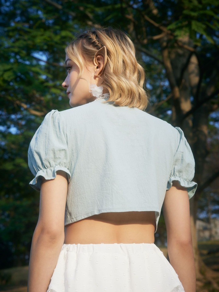 Fairycore Crop Top mit Band vorne, Puffärmeln