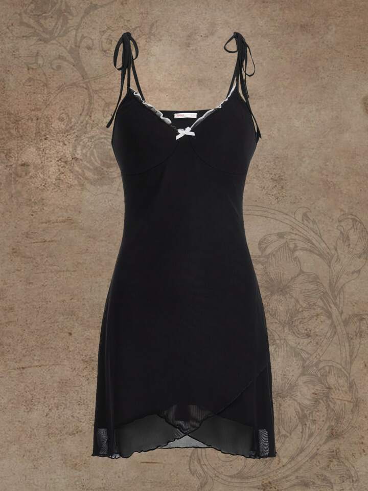 Fairycore Schleifen Knoten Wellensaum Einfarbig Lässig Kleid