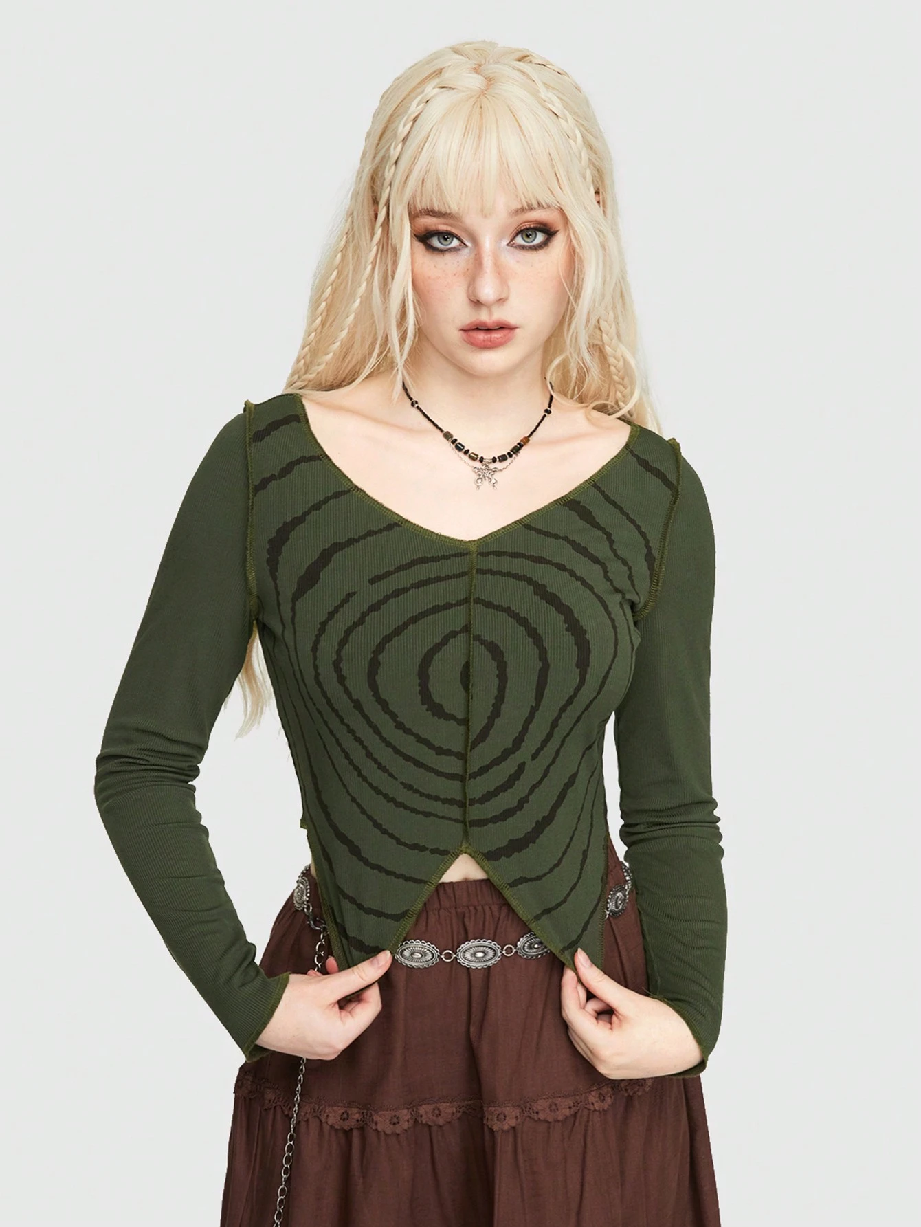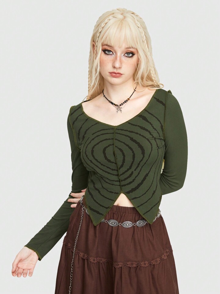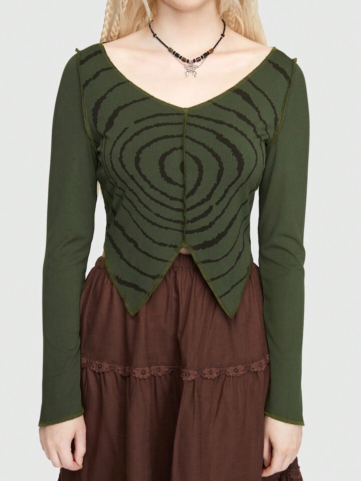 Fairycore V-ausschnitt T-shirt Mit Geteiltem Saum
