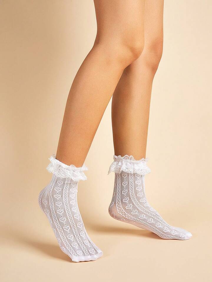 Fairycore Valentinstag Herz-spitzen-kniestrümpfe, Lolita-stil Niedliche Socken