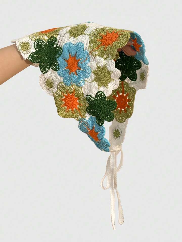 Fairycore Vintage Blume Muster dünner dreieckiger Schal, französischer Sommerkopftuch Stil für Fotoprops