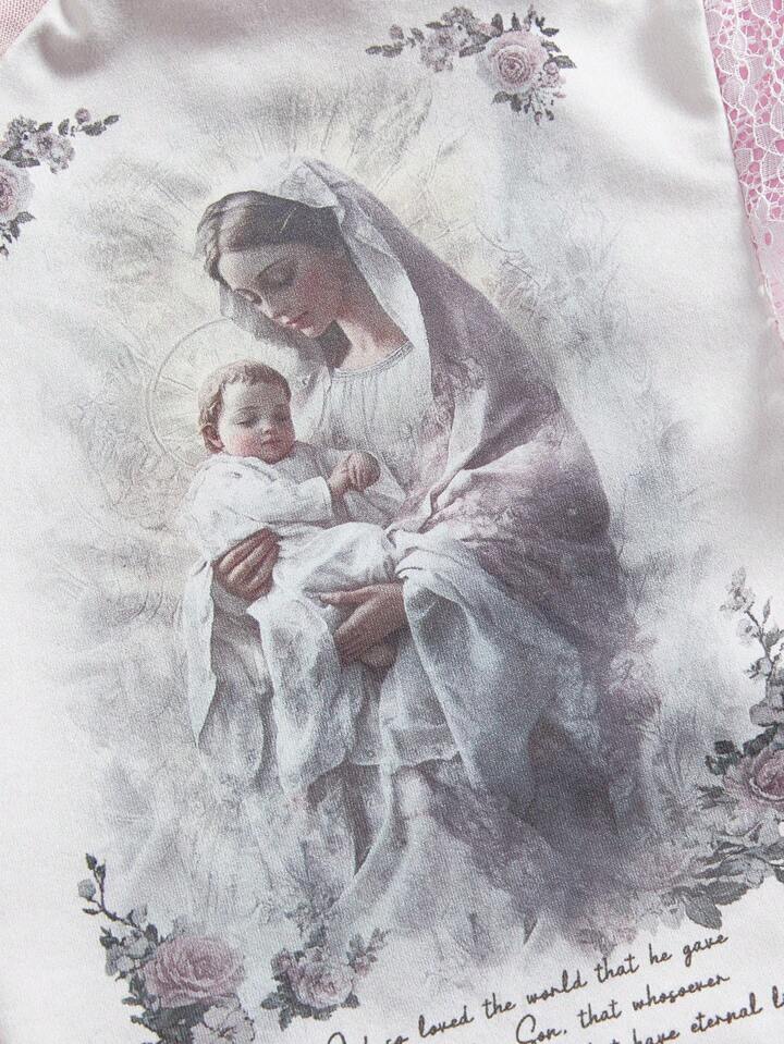 Fairycore Vintage-Stil Damen Jungfrau Maria Muster Kontrast Spitze Taille Korsett Top