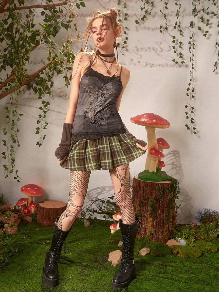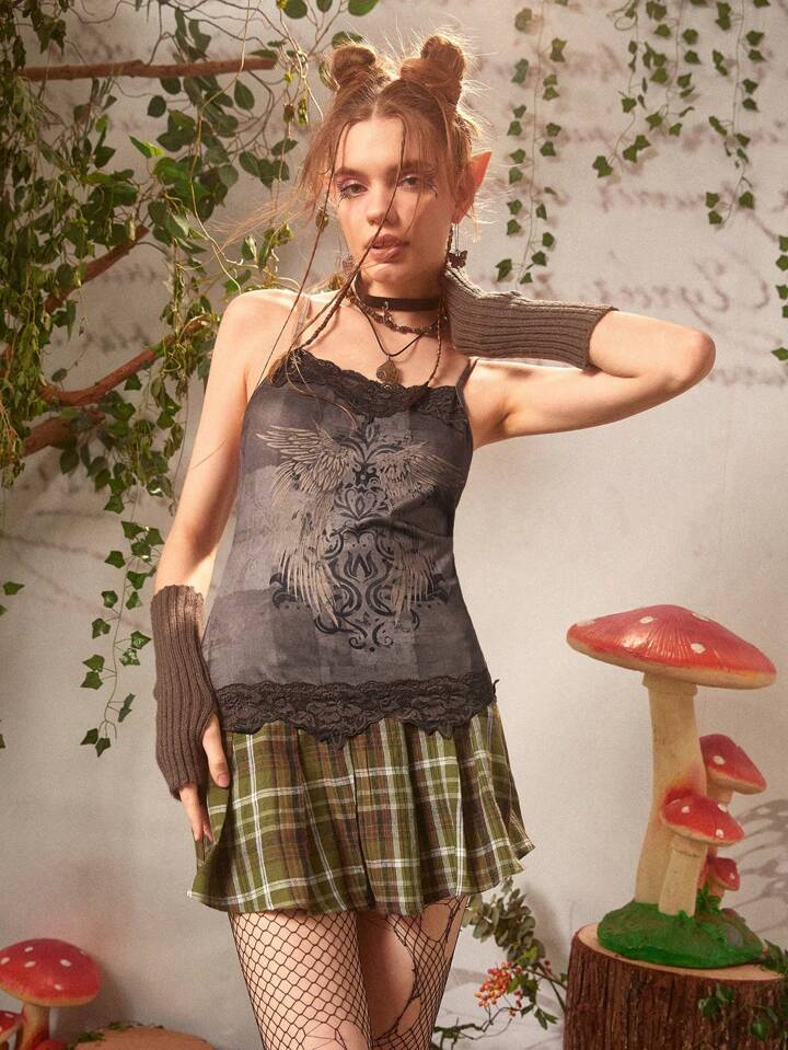 Fairycore Cami Top mit Flügel Muster, Kontrast Spitzen,