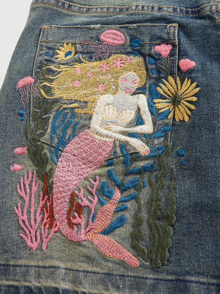 Fairycore Damen modischer Bleistift-Denim Rock mit Meerjungfrauendruck