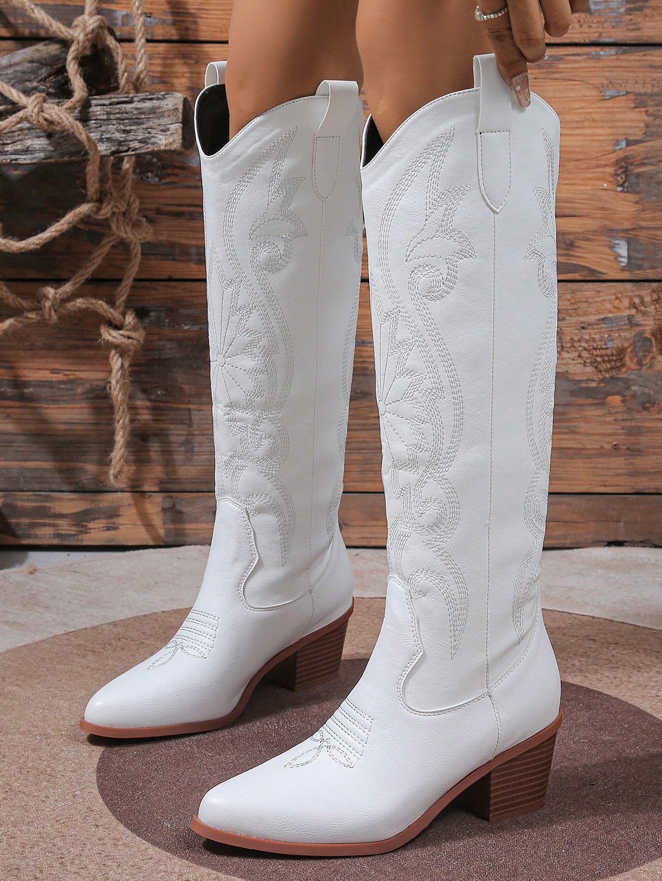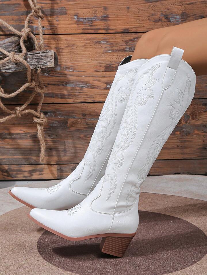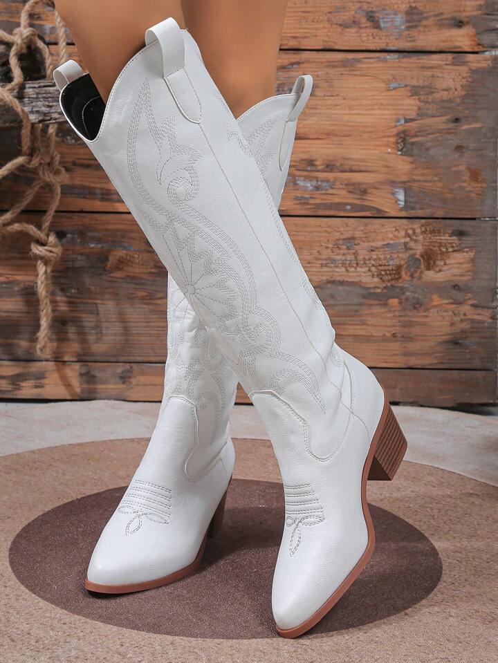 Fairycore Damen Stiefel im Western-Stil mit Ziernaht, markanter Spitze und klobigem Absatz, coole Outdoor Mode Stiefel, Cowboy Stiefel für Frauen