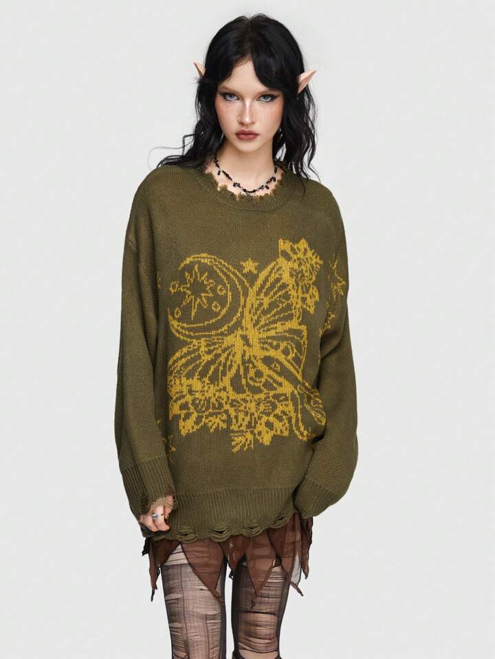 Fairycore Damen Schmetterlingsmuster Fransen Pullover
