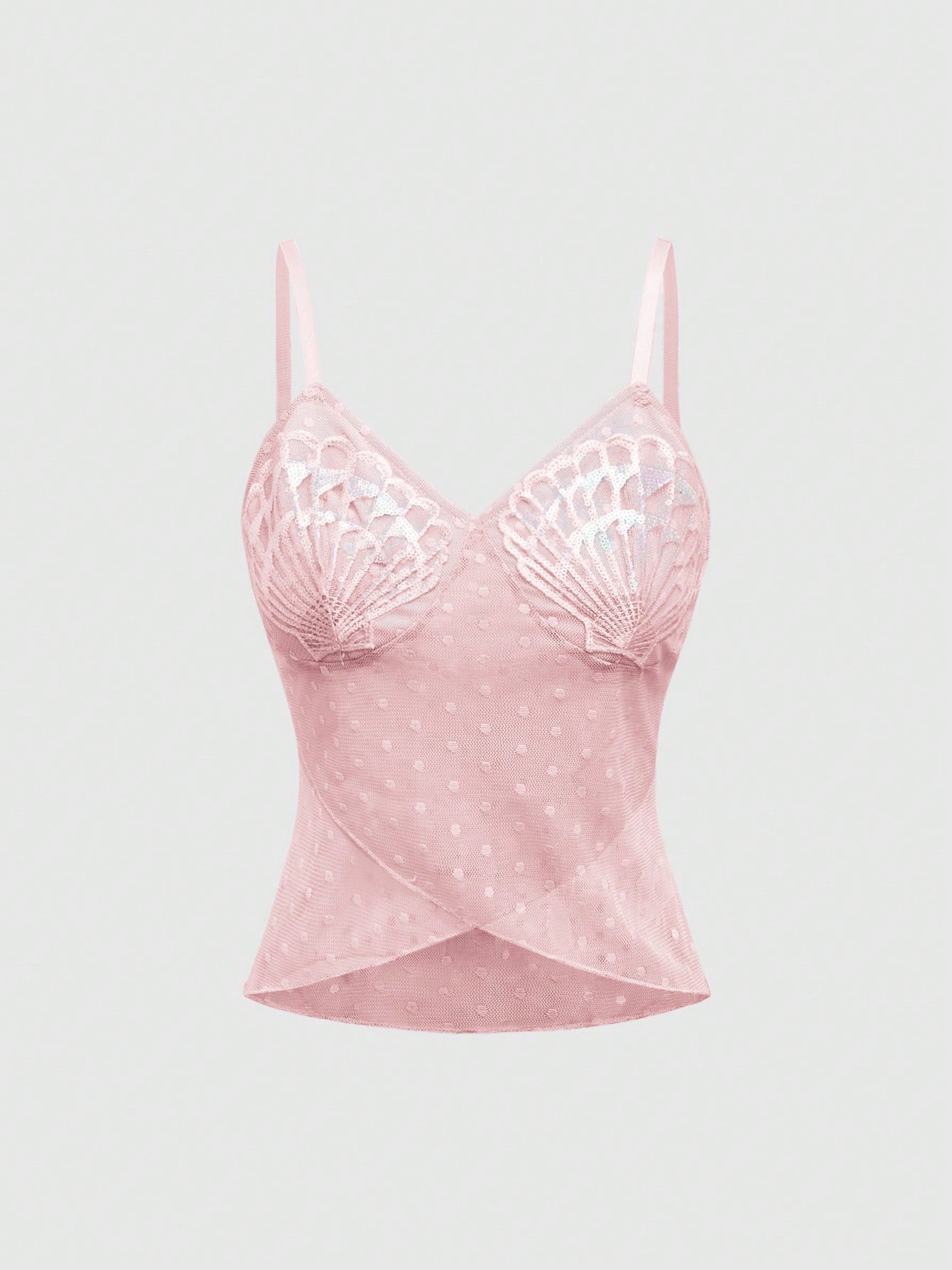 Fairycore Damen Kontrast-Farbene Seidenjacquard Durchsichtig Trägerhemd
