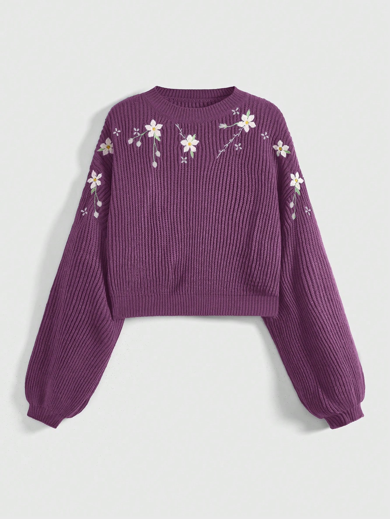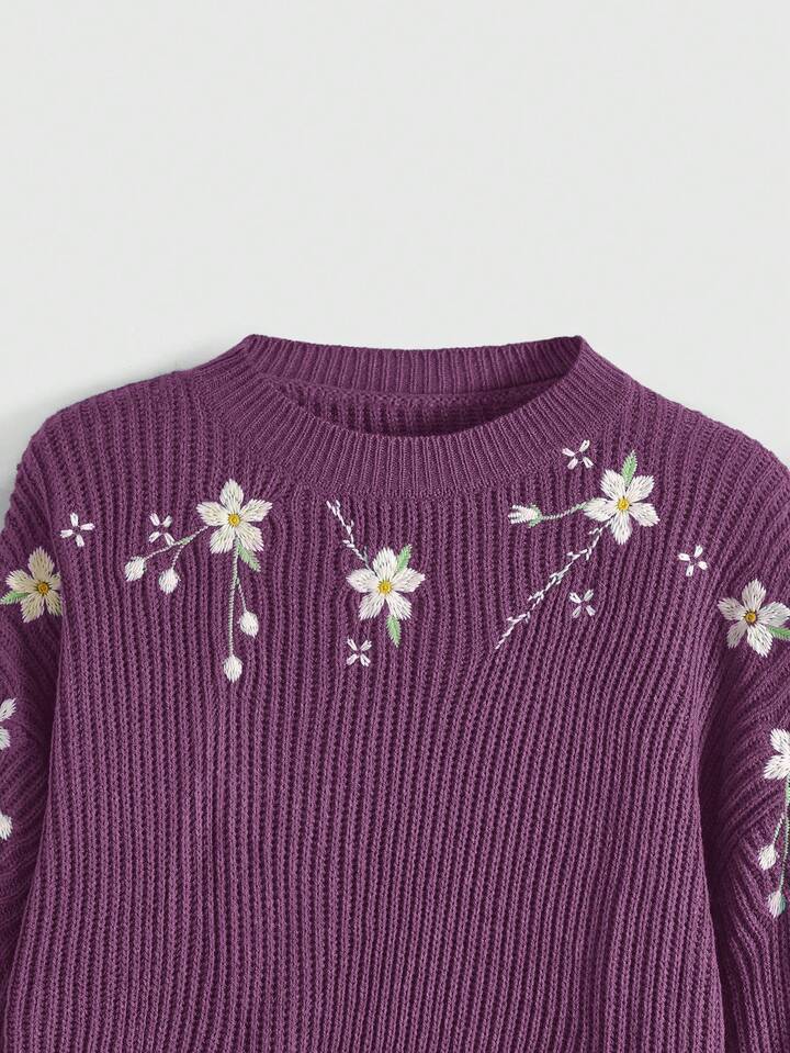 Fairycore Damen Landhaus-Stil bestickter Pullover mit Dropped Shoulder und Crop Schnitt
