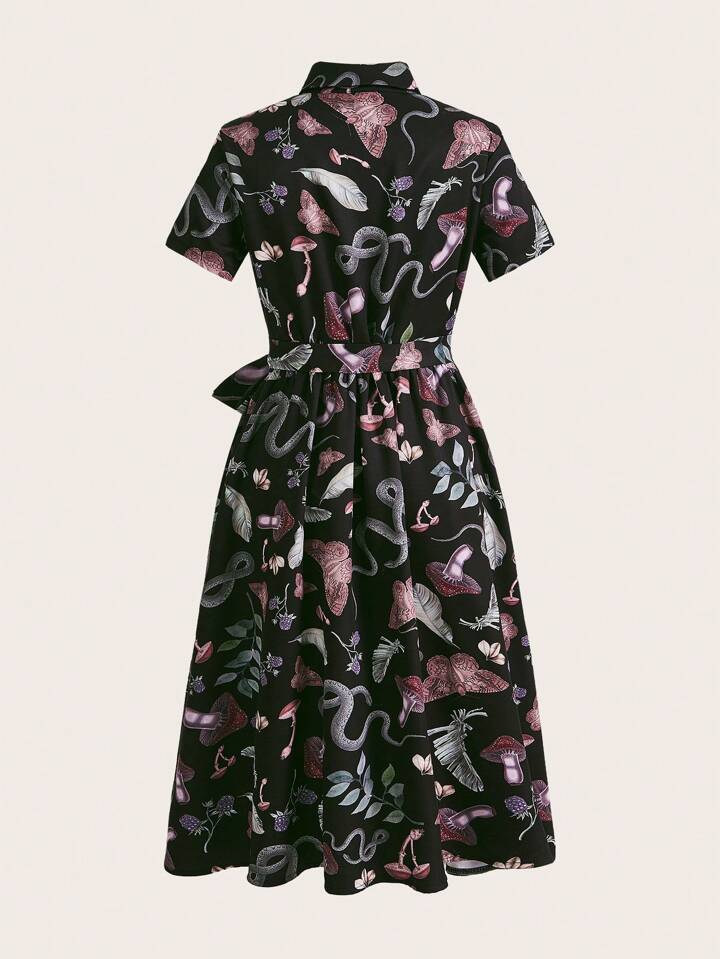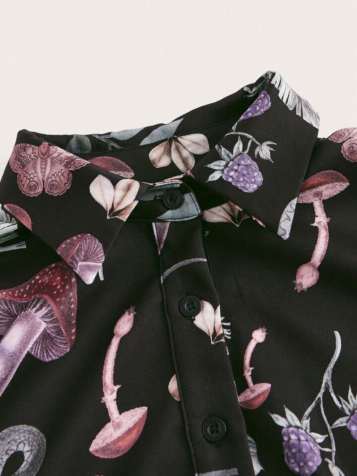 Fairycore Knopfleiste Hemd Kleid Für Damen Mit Pilz- Und Schlangenmuster
