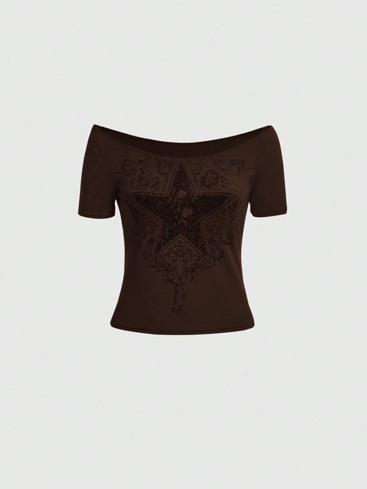 Fairycore Damen Off Shoulder T-shirt Mit Fünfzack Stern Druck