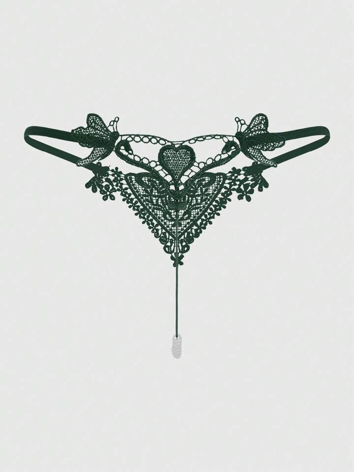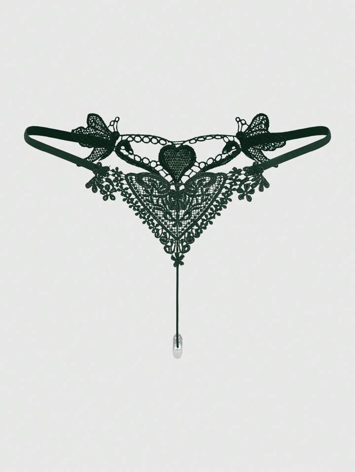 Fairycore Damen romantische Spitzen-Herz- und Schmetterlings-Perlentanga