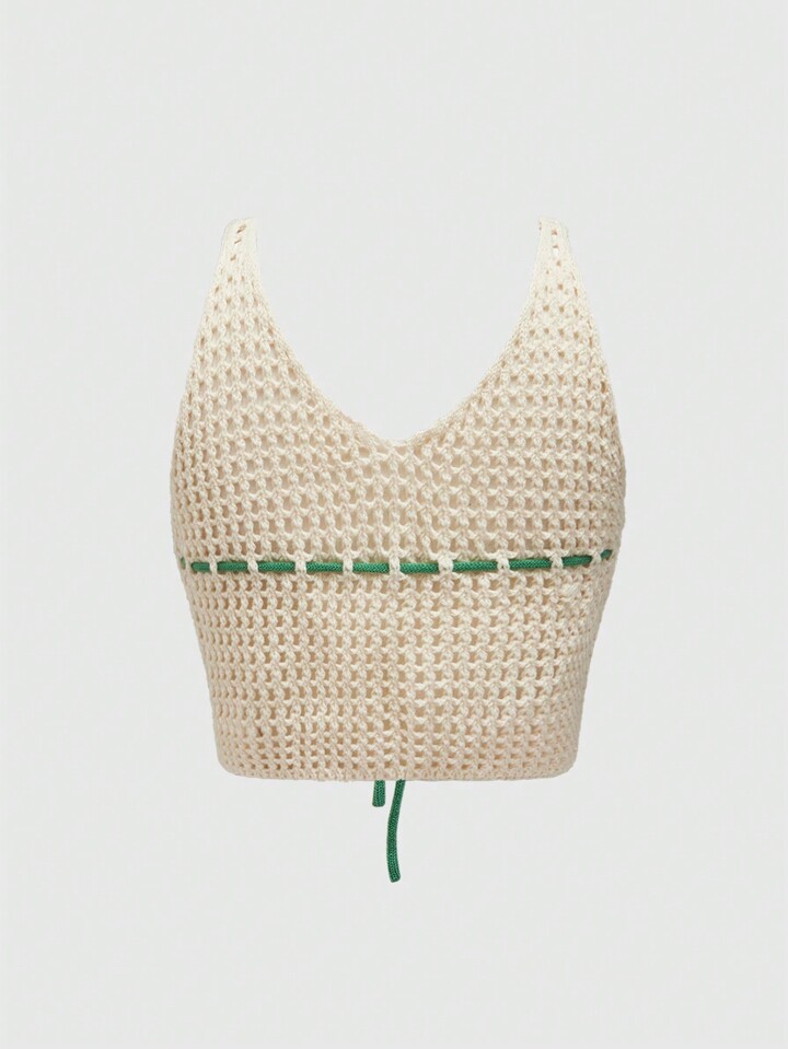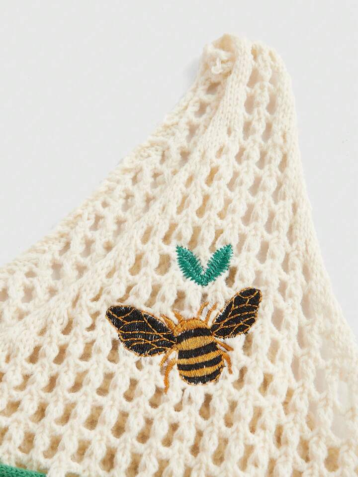 Fairycore Sommer Ärmellose Spitzen Häkel-Strick Top für Damen mit Bienen-, Blumen-, und Pflanzenstickerei