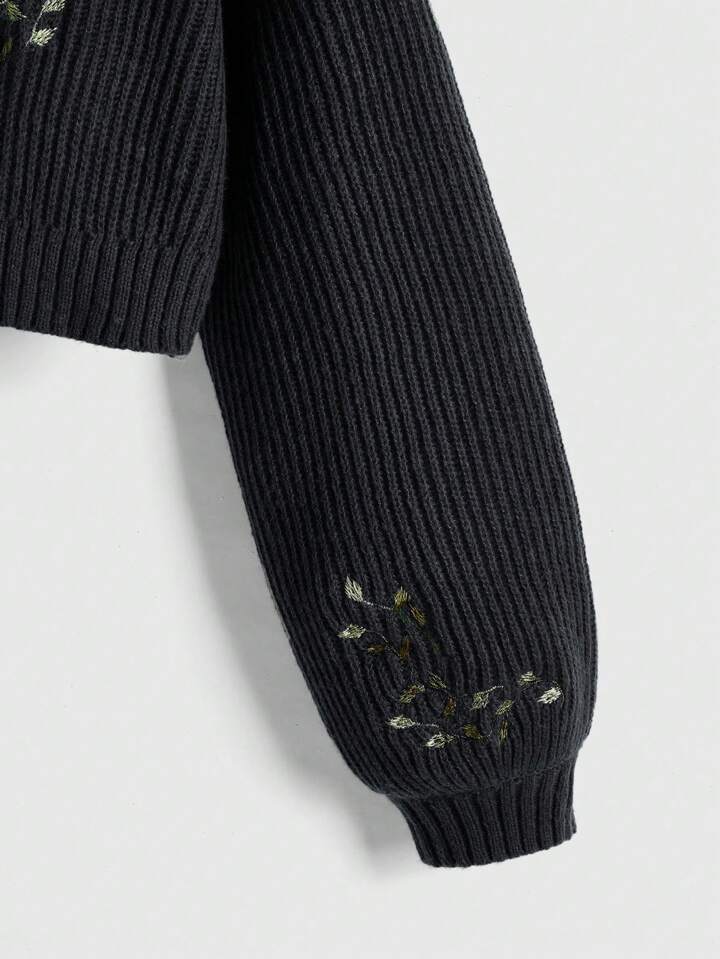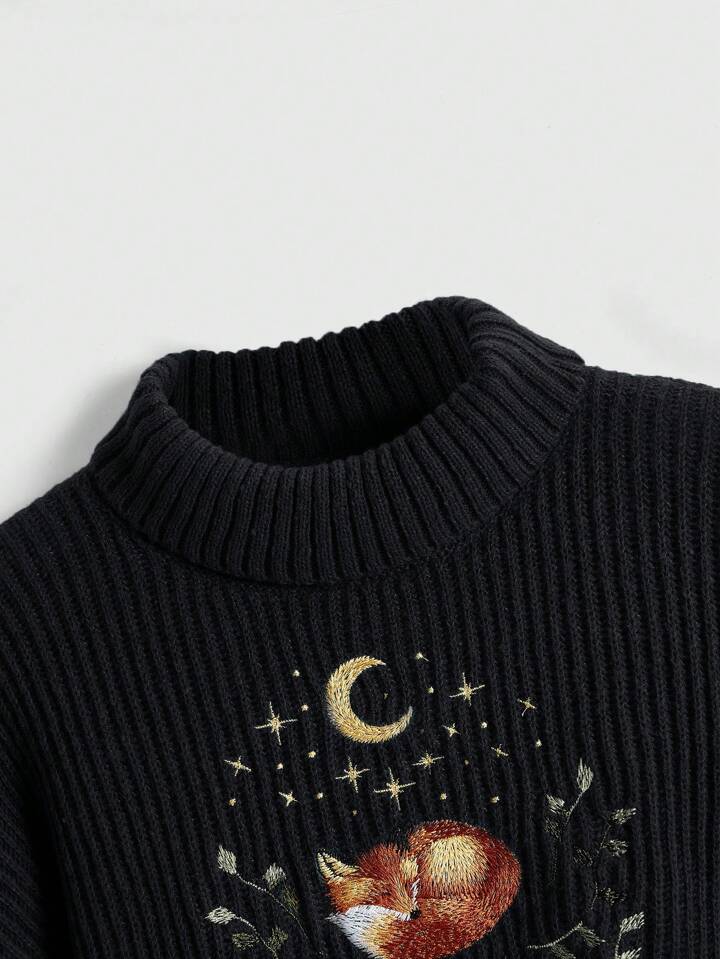 Fairycore Damen Rollkragen Langarm Pullover mit Fuchs Stickerei, lässiger Alltagspullover