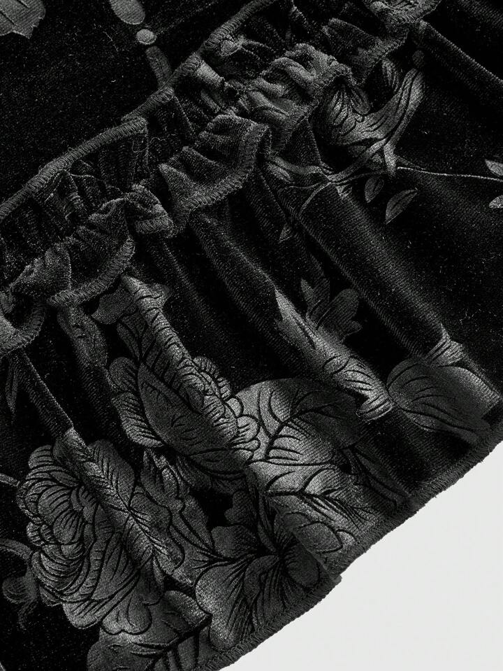 Fairycore Samtkleid Für Damen, Verziert Mit Einem Metallischen Blumenanhänger