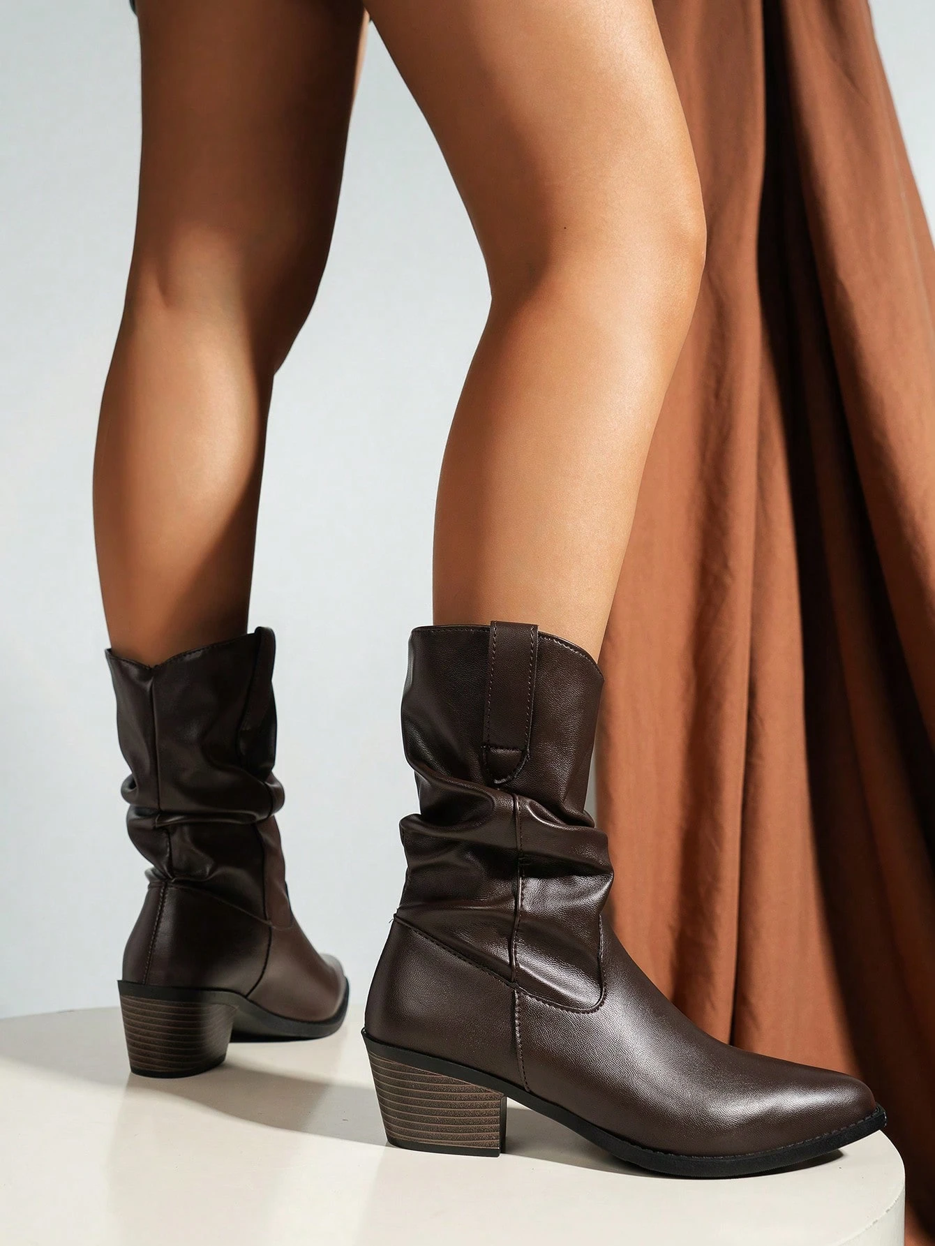 Fairycore Vintage-western-cowboystiefel Für Damen, Neuankömmlinge Im Herbst Und Winter 2023, Ritterstiefel Mit Dicker Sohle, Vielseitiger Blockabsatz, Kurze Motorradstiefel, Schmale Hohe Stiefel