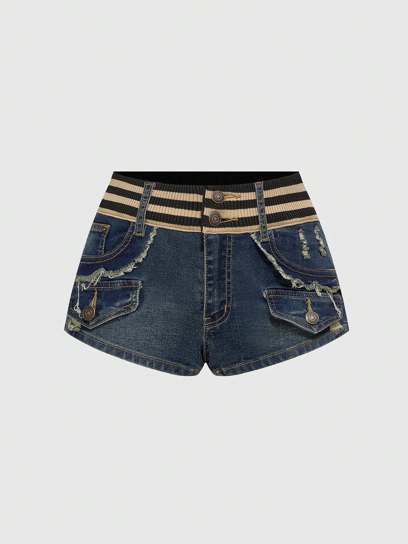 Fairycore Y2K Streifentaille, Fronttasche, verwaschene vintage Jeans Shorts