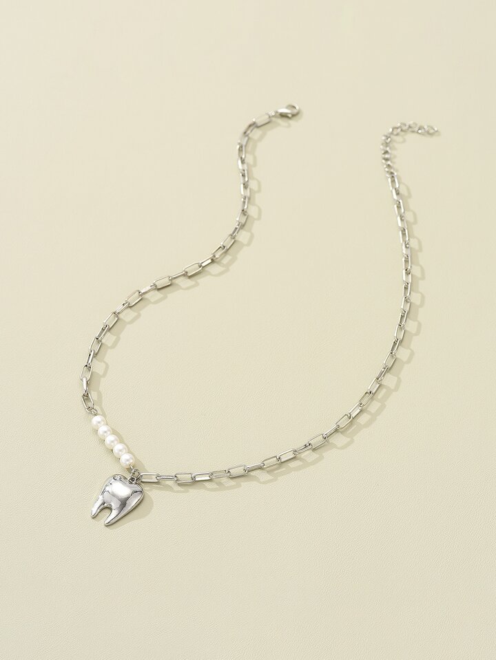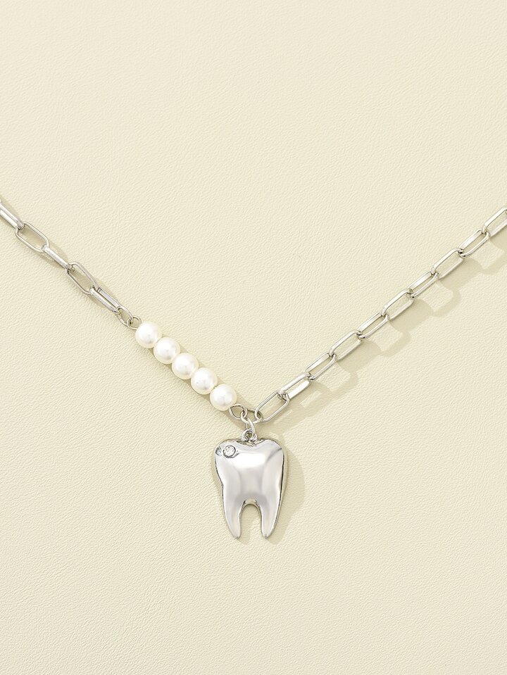 Halskette mit Kunstperle Dekor, Zahn Anhänger