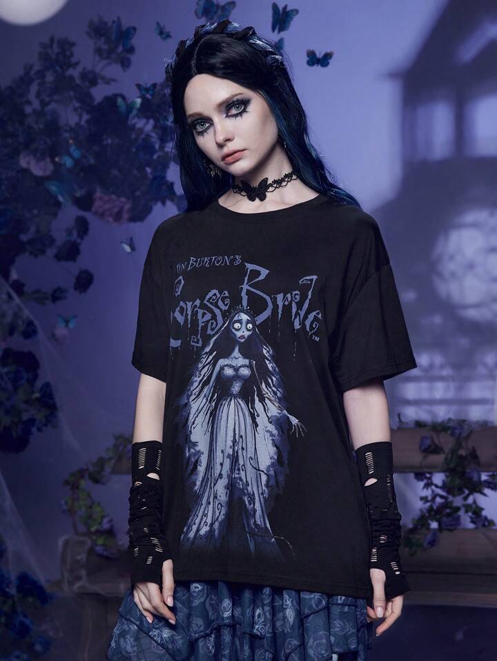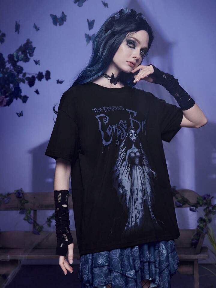 Corpse Bride | ROMWE Cartoon Figuren Grafik T-Shirt