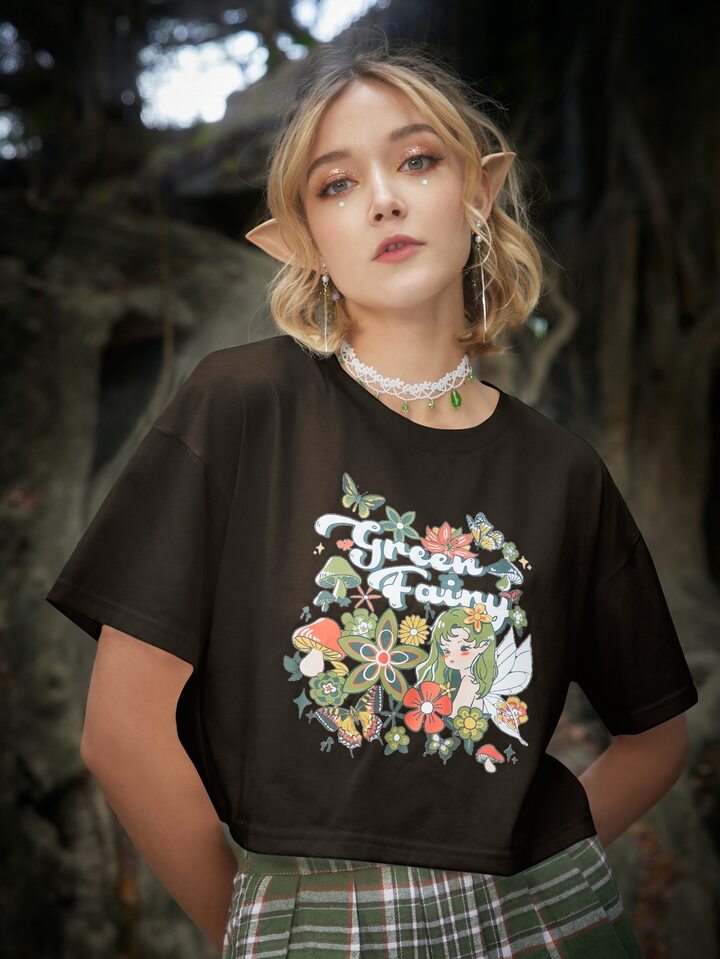 T-Shirt mit Figur Buchstaben Grafik