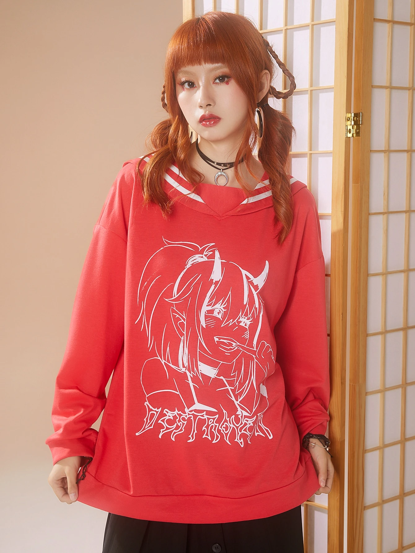 Sweatshirt mit Figur Muster, Seemannskragen, Drop Shoulder