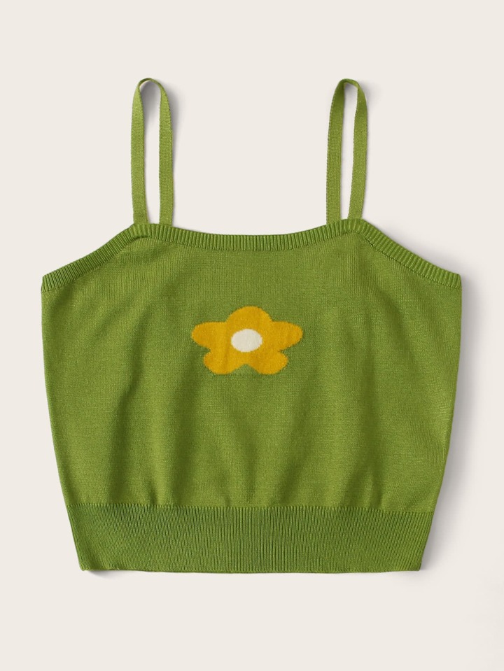 Strick Crop Top mit Blumen